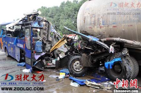 10月3日下午3點(diǎn)左右,滬寧高速南京至馬山方向,一輛牌照為蘇A49666的旅游大巴追尾一輛牌照為滬EV42716的油罐車,導(dǎo)致多人傷亡。